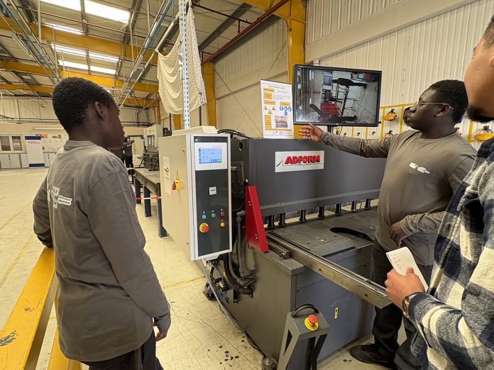 Située dans les anciens bâtiments de la DIAM aux Mureaux, l’école de production, ouverte en octobre 2024 et tout juste inaugurée la semaine dernière, forme des jeunes sortants de 3ème aux métiers de la métallerie. « Les écoles de production aujourd’hui sont en pleine croissance, et répondent à un vrai besoin à la fois des jeunes qui cherchent du sens dans leur apprentissage de métier et cherchent des débouchés concrets, vers des entreprises qui sont en besoin de main d’oeuvre qualifiée », explique le directeur de l’établissement, Timothée Verwaerde. Les 17 élèves de première et deuxième année passent 85% de leur temps de formation « sur la machine » afin d’acquérir le geste et le savoir-faire lié à leur métier, via des cursus en quatre ans sanctionnés par un Certificat d’Aptitude Professionnelle (CAP) puis par un baccalauréat professionnel.